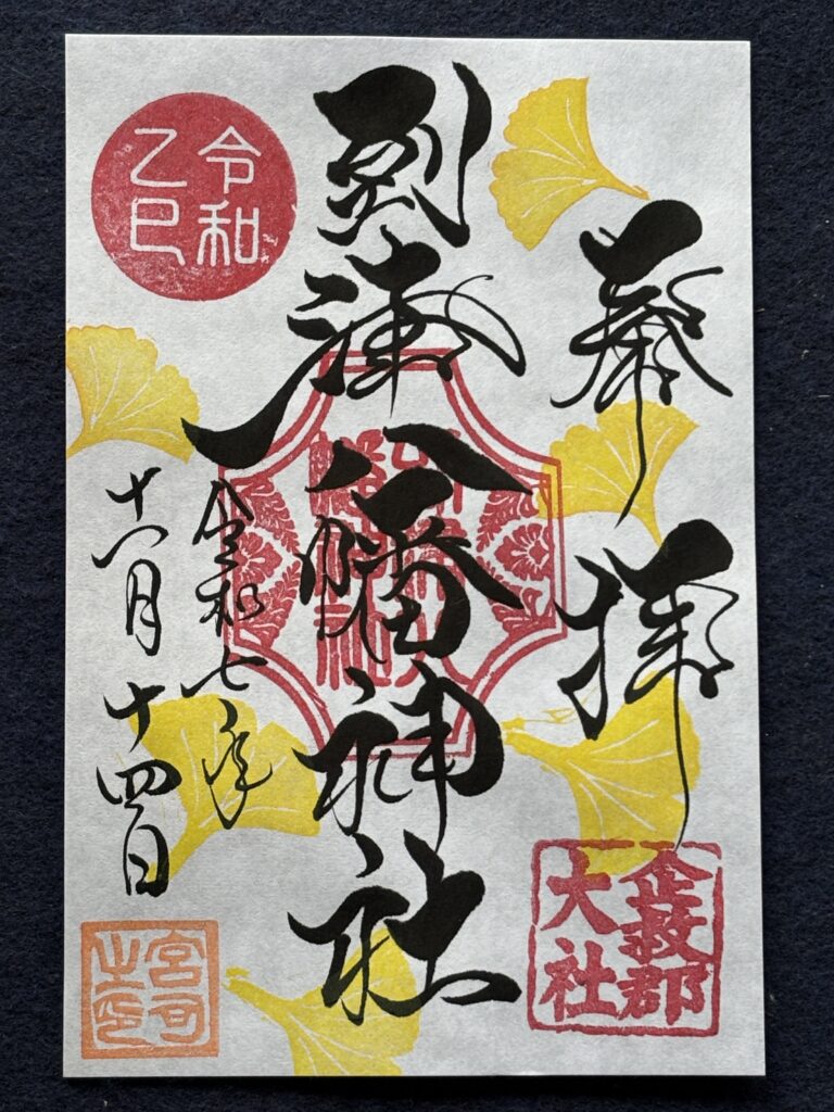季節御朱印・イチョウ 2025年11月13日 先日、何となくイチョウの葉を彫ってみました。出来が良かったので、御朱印にする事にしました。11月14日からお出しします。書置きも作ります。直書き(じかがき)は、宮司がいる時のみです。 page top
