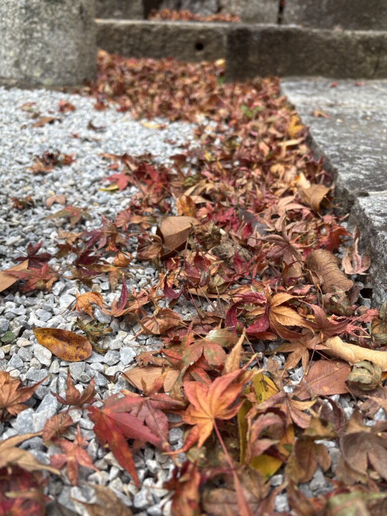 あっという間に、地面はモミジだらけ。モミジは、イッキに落ちて、また軽いので掃除がしやすいのです。