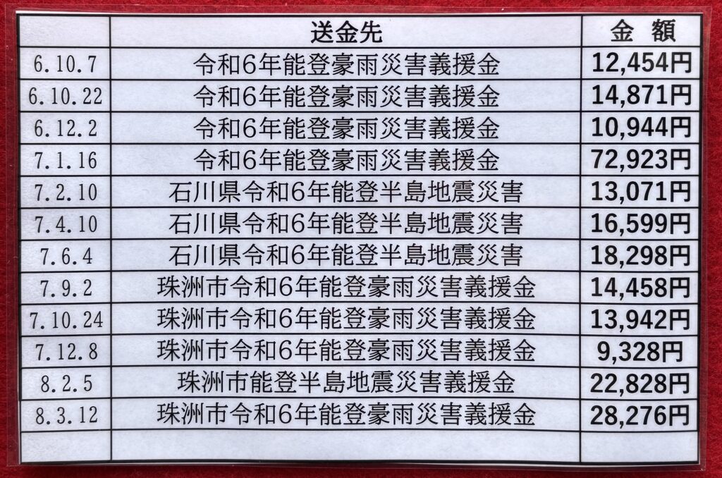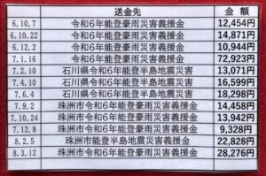 令和6年1月からは能登半島の災害に送金しています。